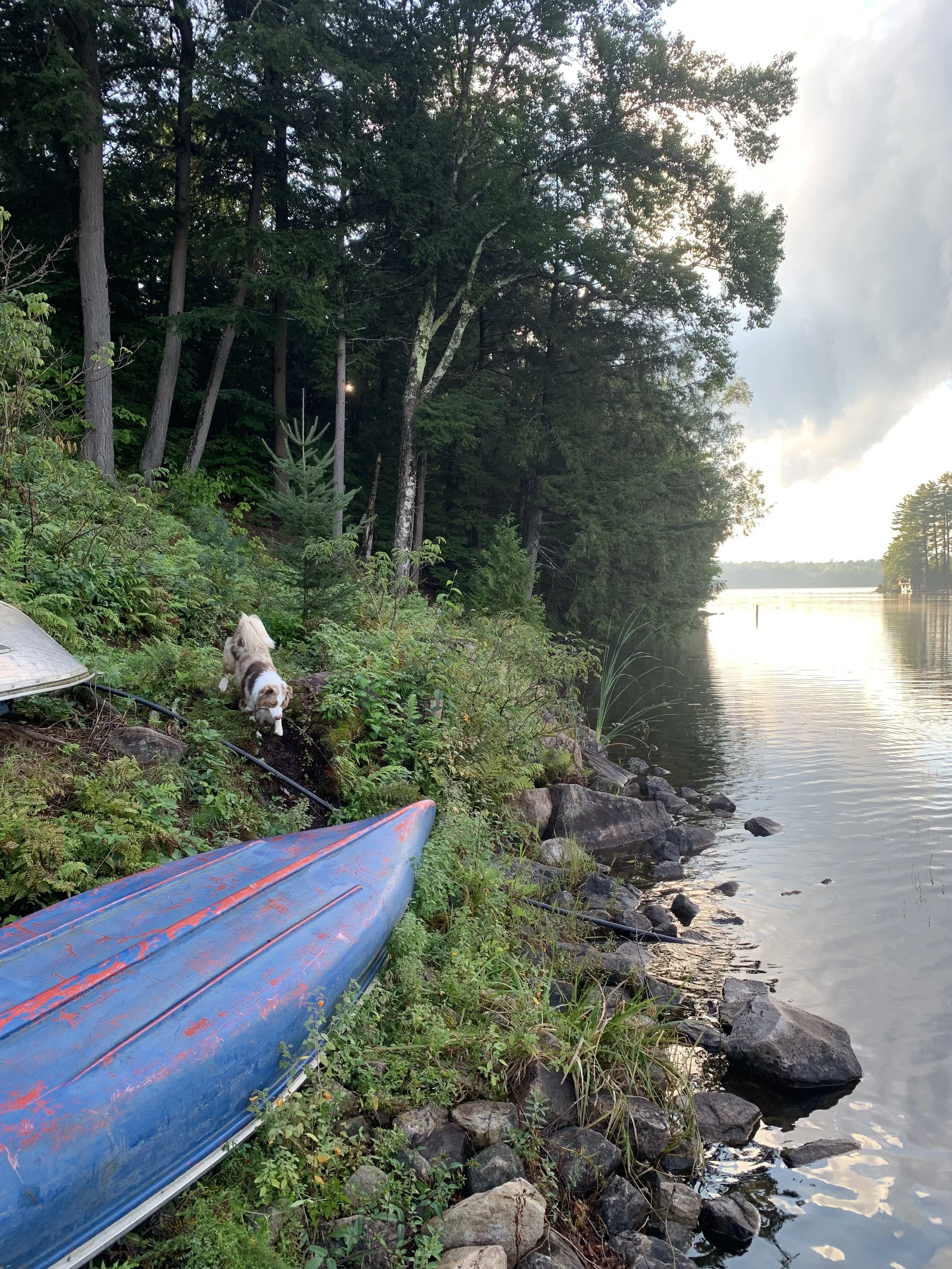 Lake Sandy, Ontario (oddly, no sand) (Also, that’s not my dog.)